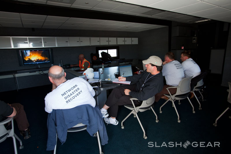 Of increasing importance since 9/11 has been the AT&T NDR Hazmat team, a core group of 30 volunteer staff trained to work in hazardous environments. Four sets of hazmat equipment are in position around the US, with the team able to go in alongside on-site emergency personnel for reconnaissance, restoration and recovery. According to the hazmat team we spoke to, their role doesn't just mean Stay Puft Marshmallow Man suits, but can be as simple as respirators or the proper clothing. Often their role is to go into a damaged AT&T facility and video or otherwise record the impact of the disaster; that lets the engineers time to prepare exactly what replacement systems are needed. The team described one such incident in a quarry, where a train crash released a corrosive chemical – the hazmat team could go in report on what might be fixed and what was damaged beyond repair, together with reporting on what might be dangerous to non-hazmat staff.