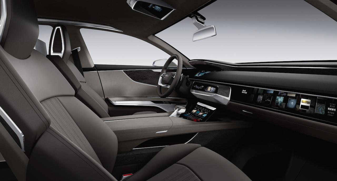Semi-transparent mirrors and stacked high-res displays round out the visual glitz, but there are two Audi tablets – using curved OLED displays – that can be mounted in the headrests for rear-seat passengers, and a "sound spoiler" that motors out to better flood the cabin with music.