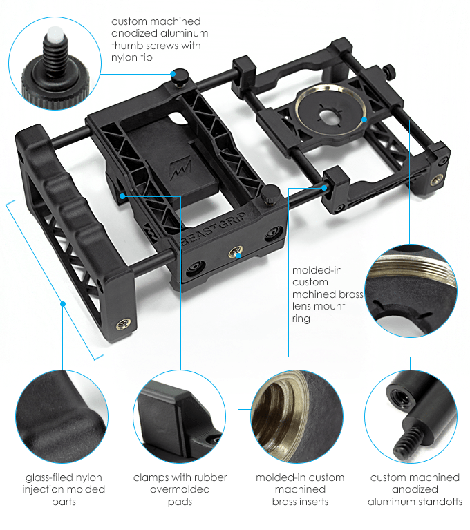 Having used the Beastgrip Pro for some time, I'll tell you the praise I shower it with is well worth it. It can adapt to any phone, offers an exhaustive list of add-ons for your phoneography needs, and is solidly constructed. Fun story; I actually dropped the Beastgrip off a second-story balcony onto cement, and it was just fine.