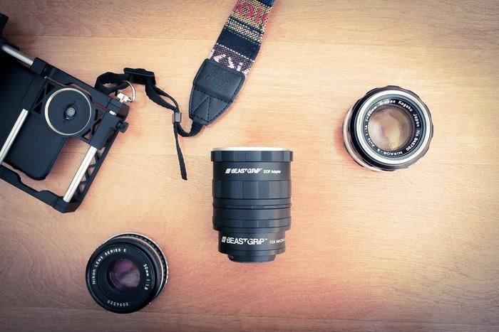 With Beastgrip Pro, project mastermind Vadym Chalenko also made his DOP adapter official via a special funding level. Born as an offshoot project in the Kickstarter for the original Beastgrip, Chalenko is now offering it as an official piece of your 'phoneography' puzzle. You can also add a series of lenses to the Beastgrip via the screw-on adapter, or a professional lens with the DOF adapter.