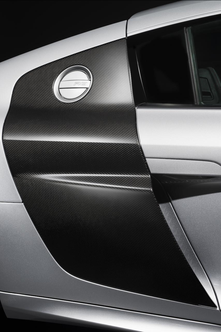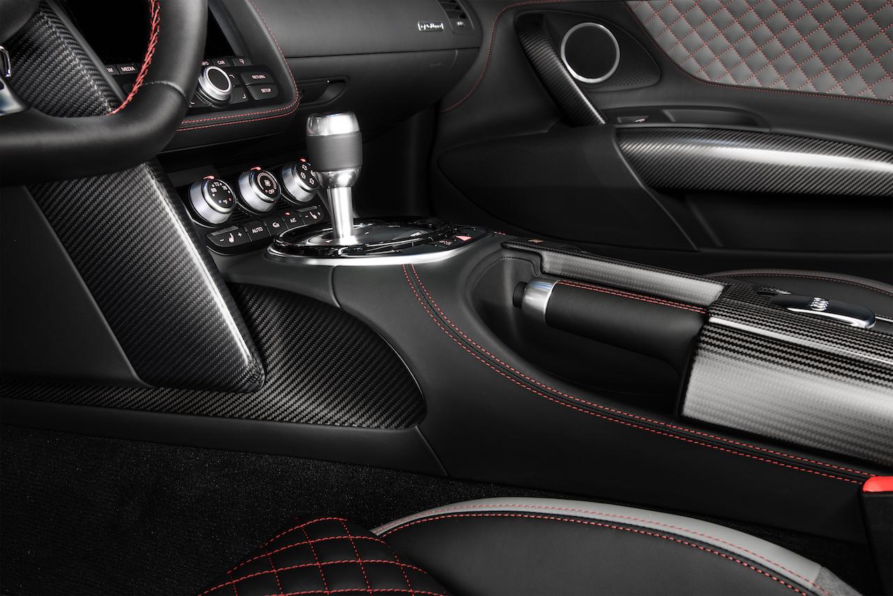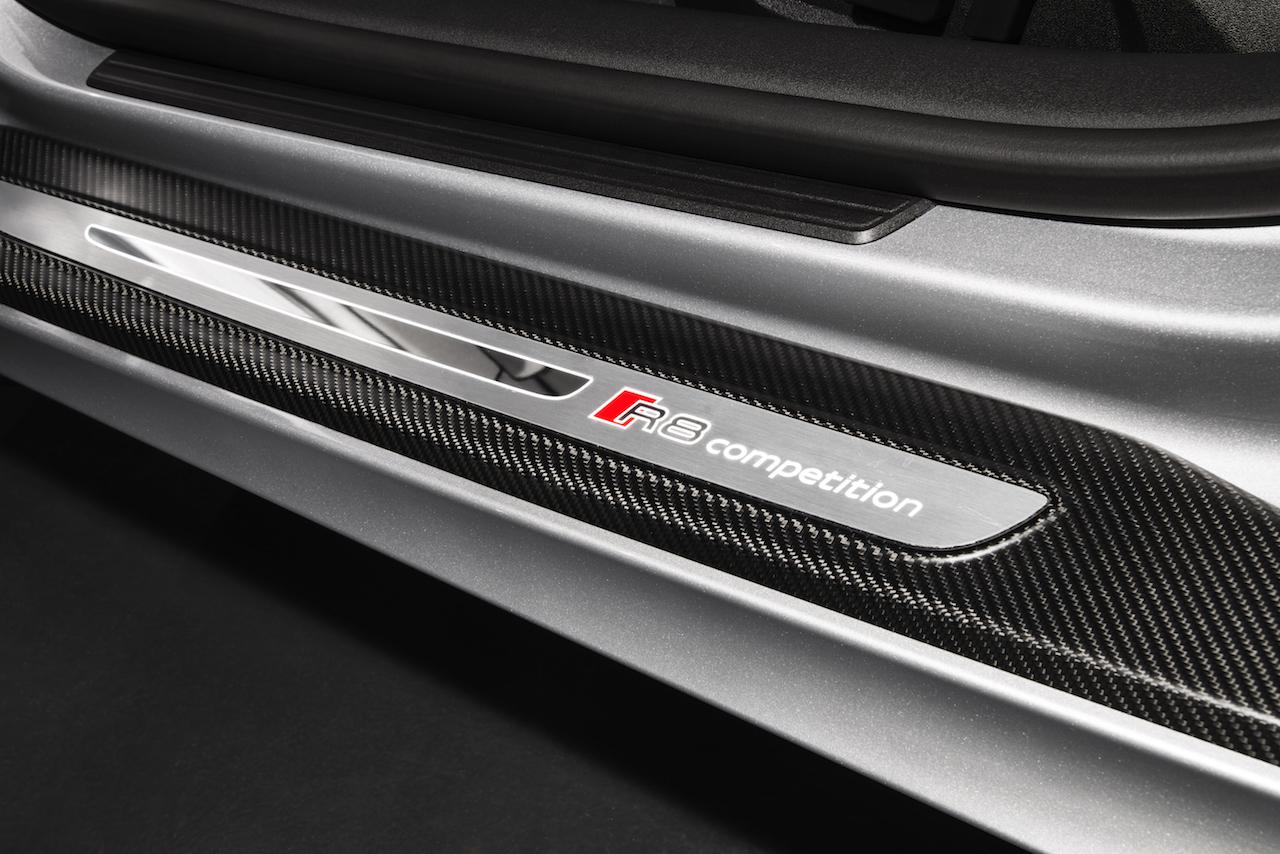 Inside, meanwhile, the center console gets its own matte carbon fiber finish, and there's illuminated "R8 competition" badging inset into the door sills.