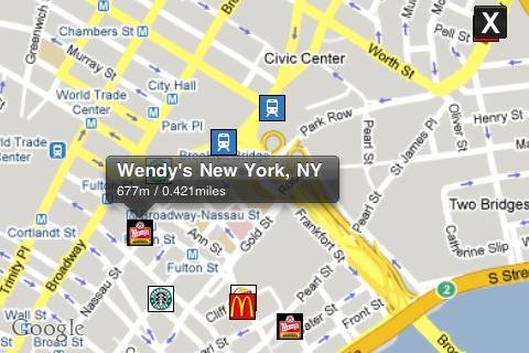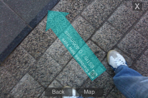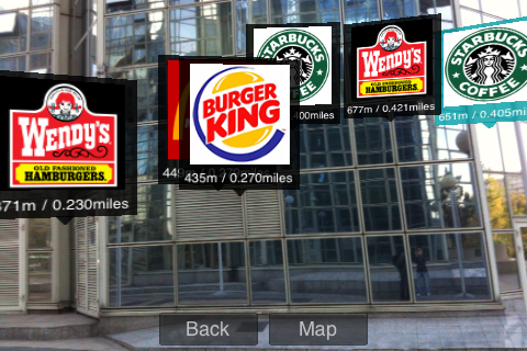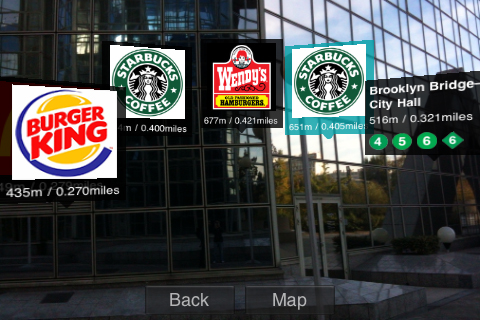 The POI database currently covers US cities, together with the UK, France and Tokyo, and they claim to have over 100,000 different entries. In fact the app will also work with the previous-gen iPhone models, together with the iPod touch, but since they lack the digital compass you'll only get a Google Maps layout, rather than the AR.