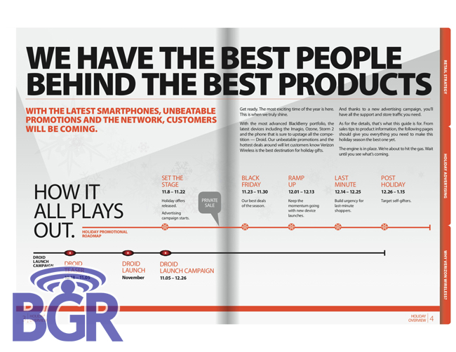 There's also a timeline which indicates a "private sale" event at some point in-between November 8th and November 23rd, which tallies neatly with the launch schedule of the Verizon Droid. That's one of perhaps three key devices for the carrier, with the others being the BlackBerry Storm2 and the Curve2.