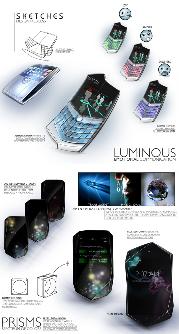 Daniel Yoon and Kiki Tang are the designers behind the Empathy, and their main focus was a device that not only "feels you" and your emotions, but that can react to them. While you use the device, or interact with it in any way, a biometric ring will tell the device how you're feeling at any given moment. As it does, the ring will feed the data to the device, and thanks to the transparent OLED display, will be able to change features, as well as details, in real-time, based entirely on your mood.