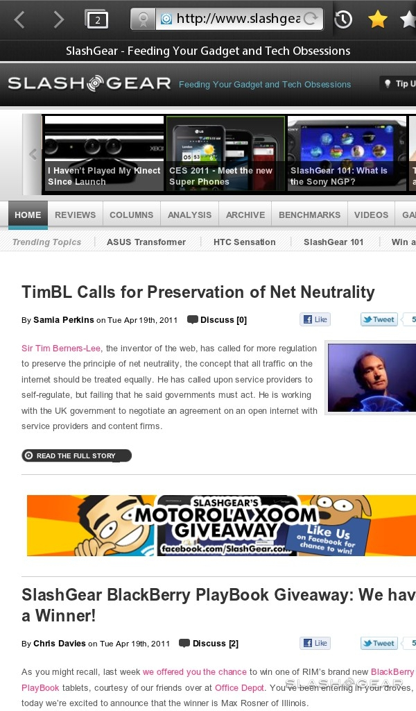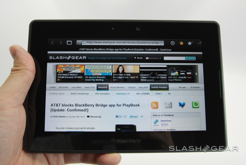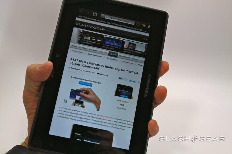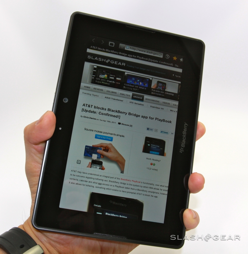 Until today, the consumer tablet market has been defined by the battle between iPad and Android. Apple's best-selling slate has set expectations for mobile utility and usability, managing to persuade users that – despite years of Microsoft Tablet PC promotion – the company pretty much invented the tablet segment. Google's Honeycomb (review) has launched its offensive against the iPad titan, and now it's the turn of RIM and the BlackBerry PlayBook. Initially billed as the enterprise-focused slate a BlackBerry phone toting business person would covet, the PlayBook's scope has gradually grown to encompass the consumer market too. Has that spreading focus left RIM with the jack of all trades or the master of none? Check out the full SlashGear review after the cut.
