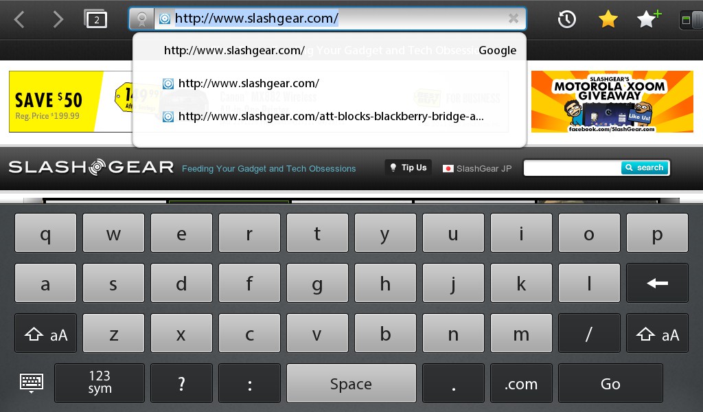 Relative value is a more difficult proposition. The PlayBook is obviously smaller than the iPad 2 and XOOM, a positive for those who want a more pocketable tablet but something that can make for a more cramped browsing experience. The enterprise security of keeping key data locked up on a user's BlackBerry smartphone rather than on the tablet makes sense in some ways, but it also artificially limits the potential audience considerably. Lots of people don't have a BlackBerry handset but might want a PlayBook tablet, and right now they're getting half the software experience out-of-the-box that Android or iOS slates offer.