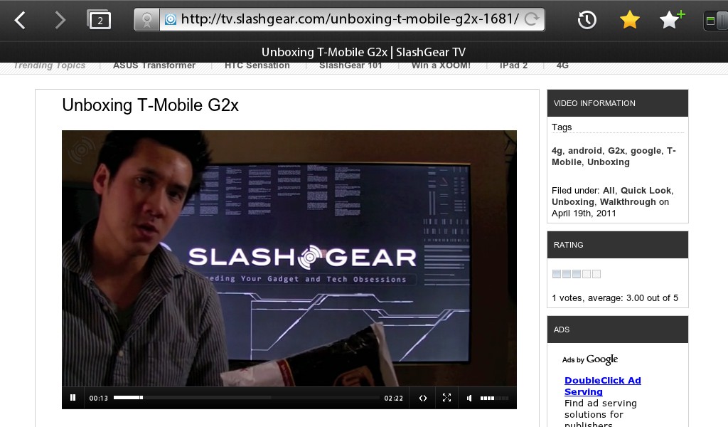 Two cameras – 3-megapixels up front, 5-megapixels on the back – comfortably outclass those on the iPad 2, both on the spec sheet and in the stills and video they're capable of shooting. There's no flash on either side, but you can record Full HD 1080p in MPEG4 format and, in well lit environments, there's minimal noise to be seen.