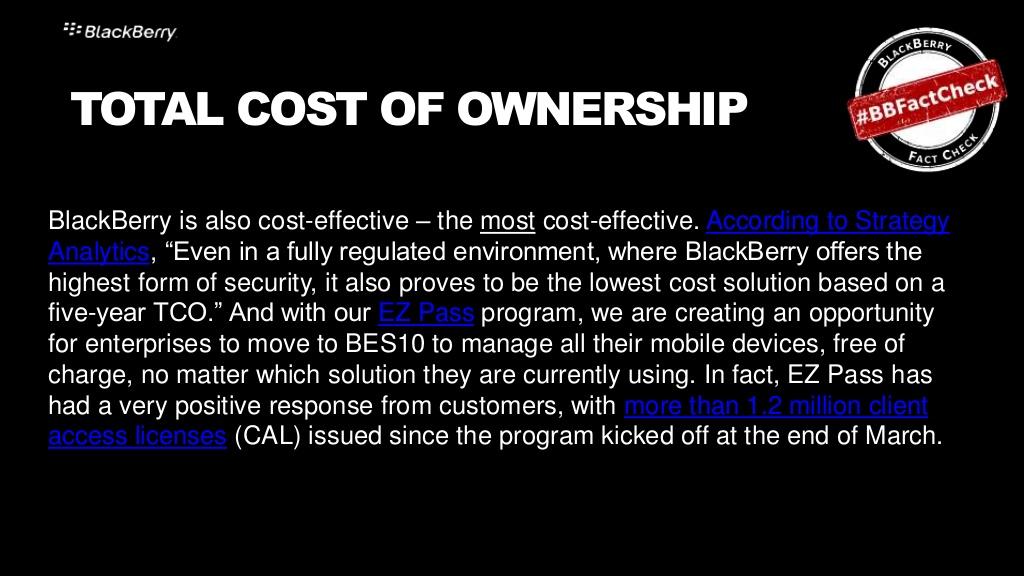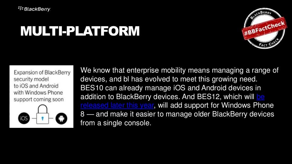 Their second article takes on Enterprise Mobility Management again. This time they suggest MobileIron, Good Technology, and AirWatch (some BlackBerry business competitors) are attempting to suggest there's an "inevitable" migration away from BlackBerry happening in the business world. To fight back, BlackBerry provides the following slides:
