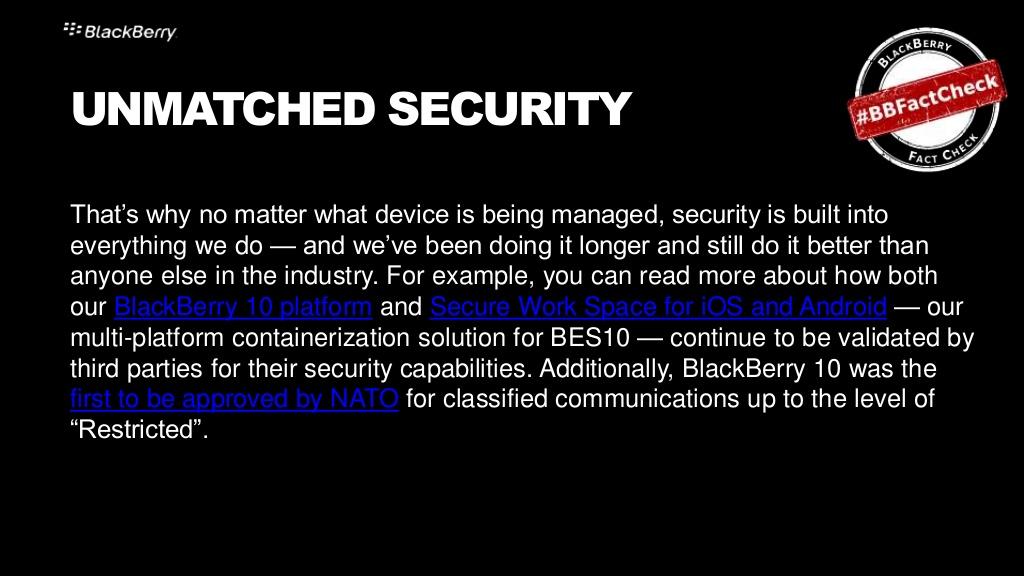 The first "BlackBerry Fact Check" to have been published is an image which you can now see below this paragraph. In it, BlackBerry suggests that they're the top secure data mover in the EMM universe – 35 petabytes of data per month on average.