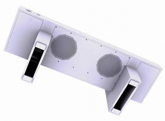60W co-axial speakers share bench-space with two subwoofers. There's also a bass shaker built into the seat to provoke the half-overwhelmed, half-ecstatic expression on the woman in the gallery below.