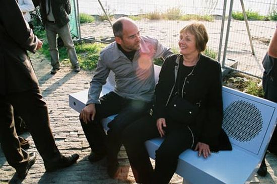 If you live in constant fear of coming across a gang of youths listening to tinny music from their cellphones and staring moodily at passers-by, good news! Now they'll be able to play their music with far more bass and mid-range, courtesy of German designer Michael Schoner of NL Architects. His Boom Bench connects via Bluetooth A2DP and is positively riddled with speakers and subwoofers.