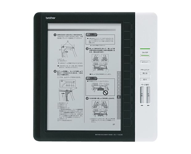 Brother Japan have announced a "document reader", the SV-100B, intended for displaying ebooks and technical documentation. The Brother SV-100B, unlike other ebook readers like the Amazon Kindle 2 or Pixelar E-Reader, has an LCD rather than e-ink display, measuring 9.7-inches and running at 1,200 x 825 150dpi resolution.