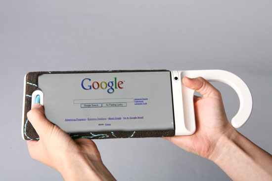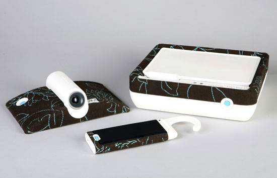 Targeted at media and data consumption more than creation, the system would allow everything from search-while-walking quick web queries and social networking checks, through to more in-depth content reading, and finally larger-scale film and video projection. Buddy uses fabric cases and covers to bridge the gap between computer and tactile decorative item, something you see with moderate frequency in concepts but far less often in production devices.
