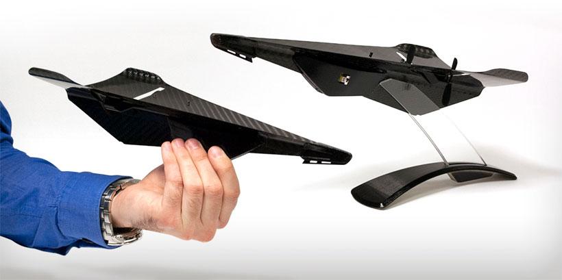 The drone is designed to be very easy to fly for adults and kids and have robust crash survival capability. The drone uses a low drag delta wing design and gets power from a pair of high power differential thrust motors.