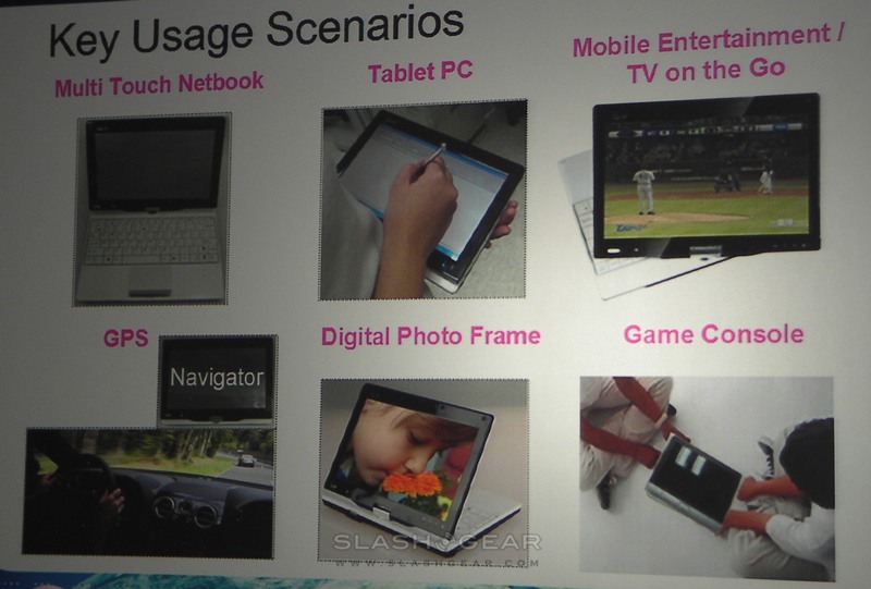 ASUS envisage the T91 as being used not just as a Tablet PC but as a GPS navigator in-car, a digital photo frame and a mobile TV platform, as well as a gaming system. No pricing or availability details were given.