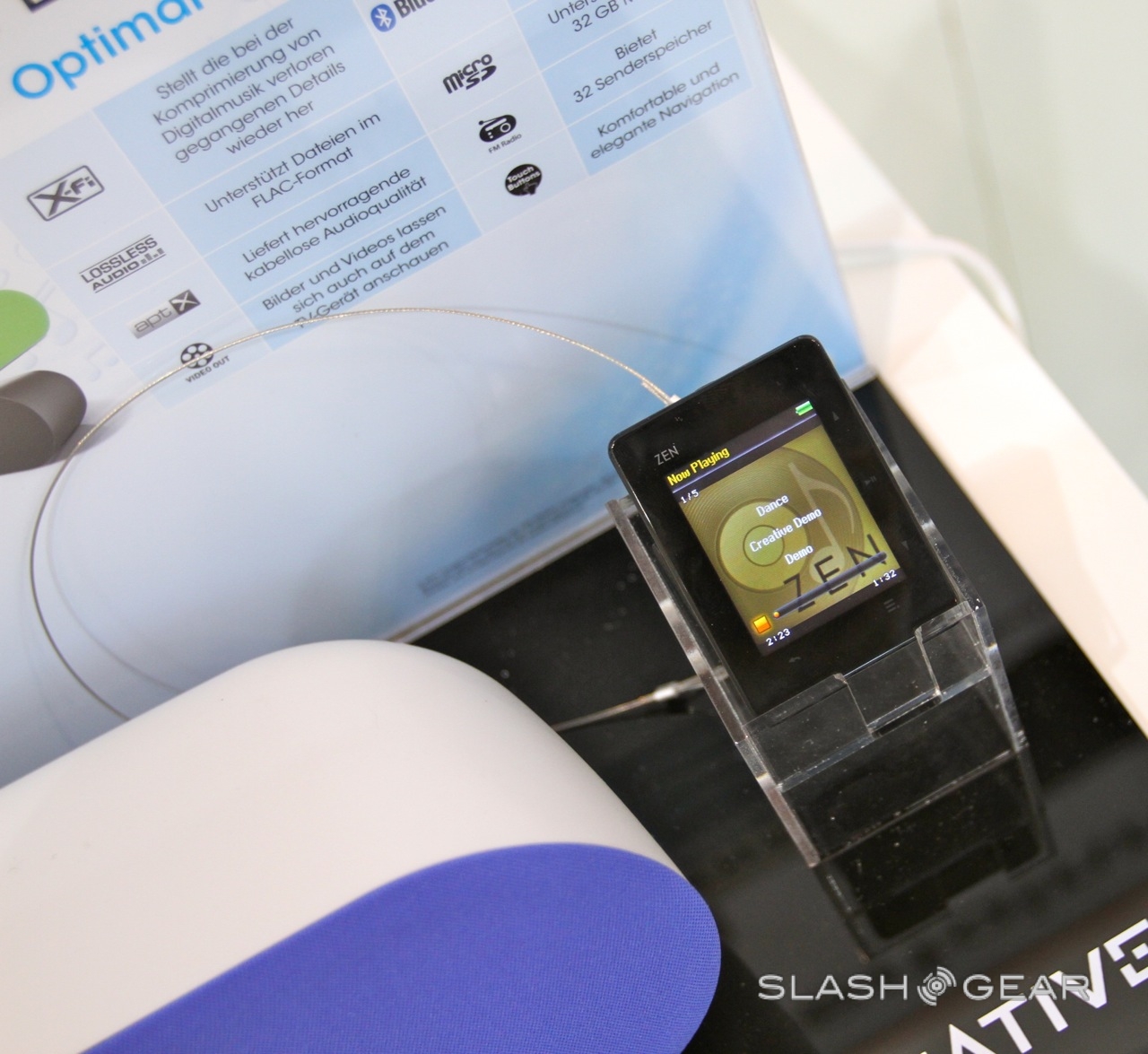 As far as what we think of the device: it's thick. It's certainly not truly keeping up with trends as far as stylish looks at portable music players, and if it's aiming to put up a fight against the big players in this particular industry, it will fail. The display is not a touchscreen, so we've got to rely on control buttons along the side which, at the moment at least, are rather unresponsive. Should the folks at Creative release this device as-is for €99 and €140 for their 8 and 16GB versions later this month in Germany, we can't imagine it'll do extremely well.