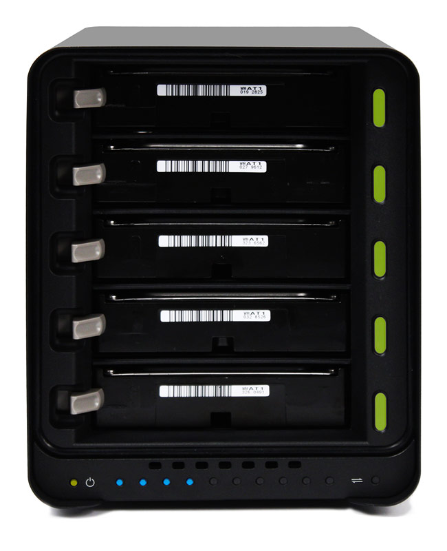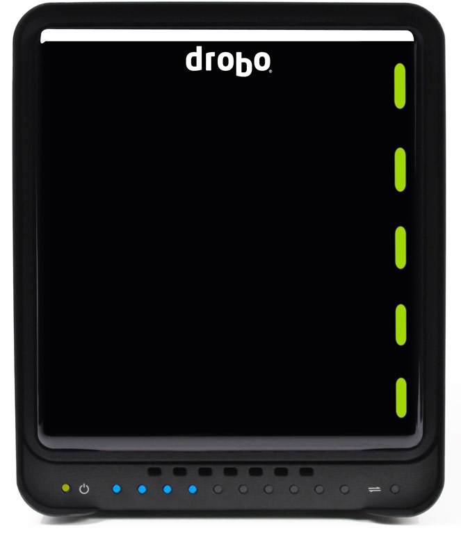 5-Drive Capacity and Instant Expansion to 10TB – Customers with growing storage requirements can easily add data capacity with minimal effort. To add capacity, customers simply insert a new hard drive or replace the smallest drive with a larger one, even when all five drive bays are full. With Drobo S, expansion is automatic and instantaneous, and access to data is always maintained.