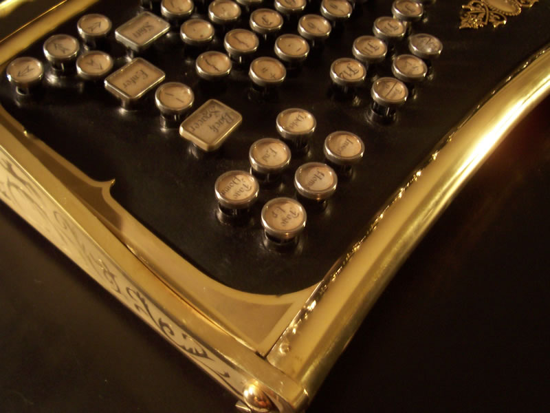 The keyboard was commissioned by a female client who wanted a more attractive peripheral but the same ergonomic comfort of the M-15. All the key-caps were replaced – after some maintenance work was carried out – with custom typewriter-style round buttons.