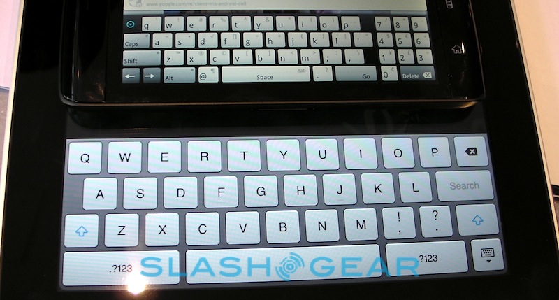 Text entry, meanwhile, is via a custom Dell on-screen keyboard, and that's somewhat less successful. In contrast to the iPad's 'board, which doesn't even fit a number row onto the main screen, Dell have squeezed a full, separate numeric keypad on the right-hand side of the regular landscape QWERTY layout. That's handy for punching in numbers, certainly, but it means the letters are significantly offset to the left for general typing; considering the natural inclination is to hold the Streak in both hands, like a PSP, and thumb-type, it's less than ergonomic. As for the portrait-orientation 'board, that shifts the numbers up above the top row of letters, as is more usual. Although our Streak arrived with predictive text and auto-correct switched off, they can be easily turned on through the settings page.