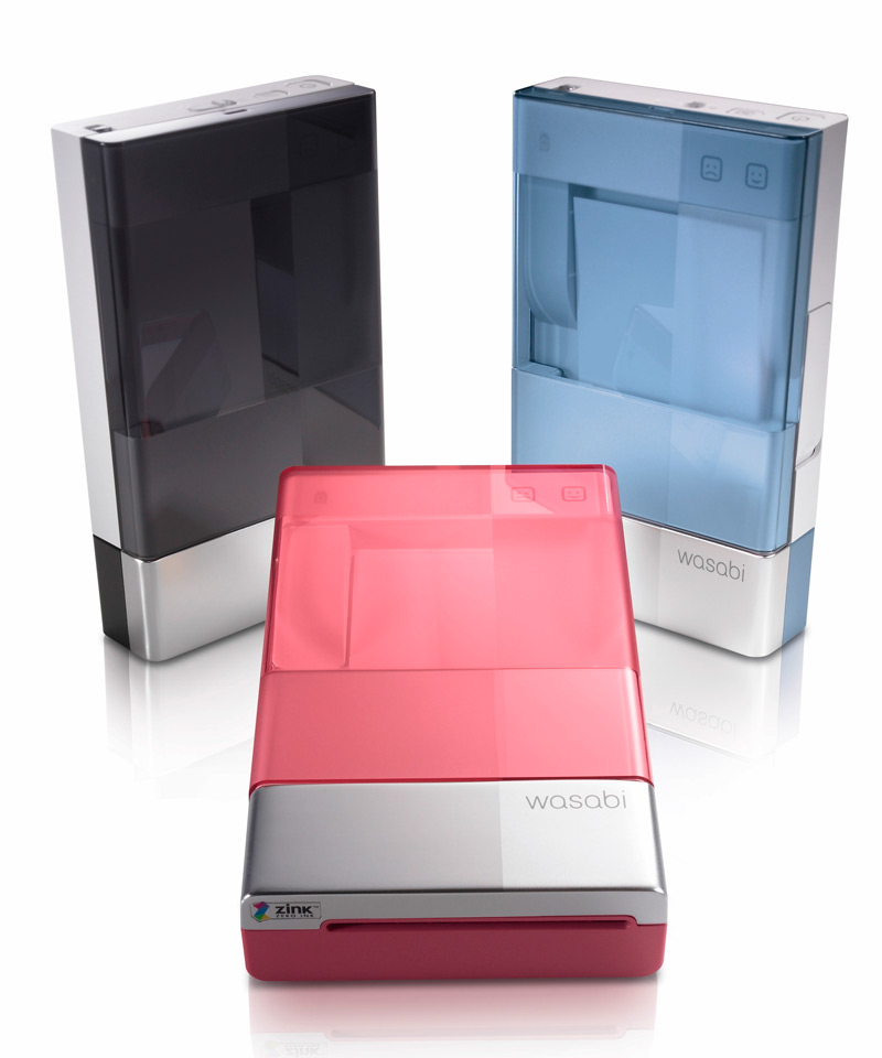The Wasabi works directly with digital cameras, mobile PC or handheld devices that support PictBridge over USB or Bluetooth connectivity. The small form factor printer utilizes the same Zink's Inkless technology with ability to print a borderless full color 2"x3" peel-and-stick ZINK paper. The unit itself doesn't carry any ink, it's the dye crystals that hide inside the specially patented ZINK paper; when heat from the printer, crystals are melted to release color. The Wasaki can store up to 12 sheets of ZINK paper in one load.