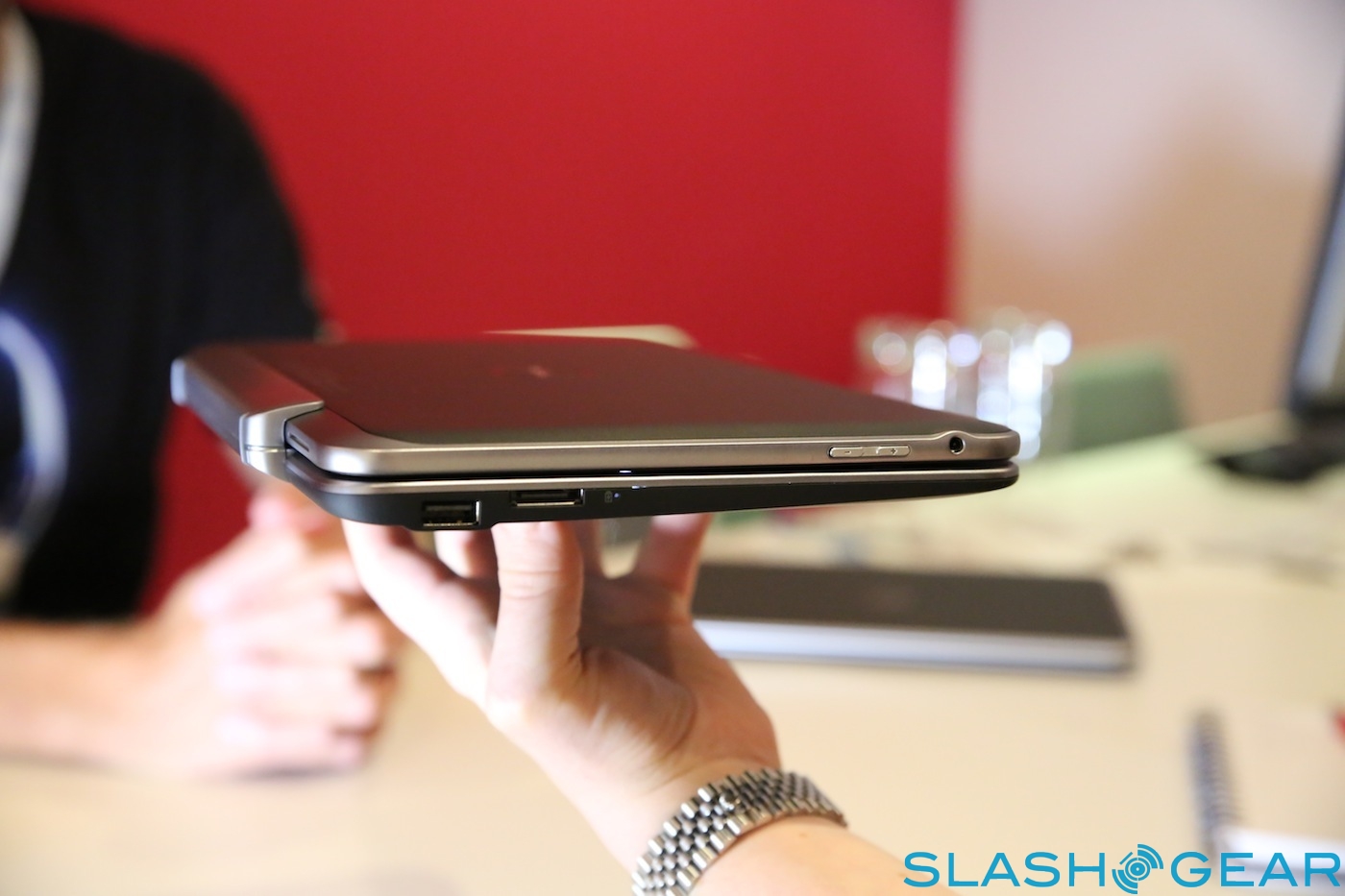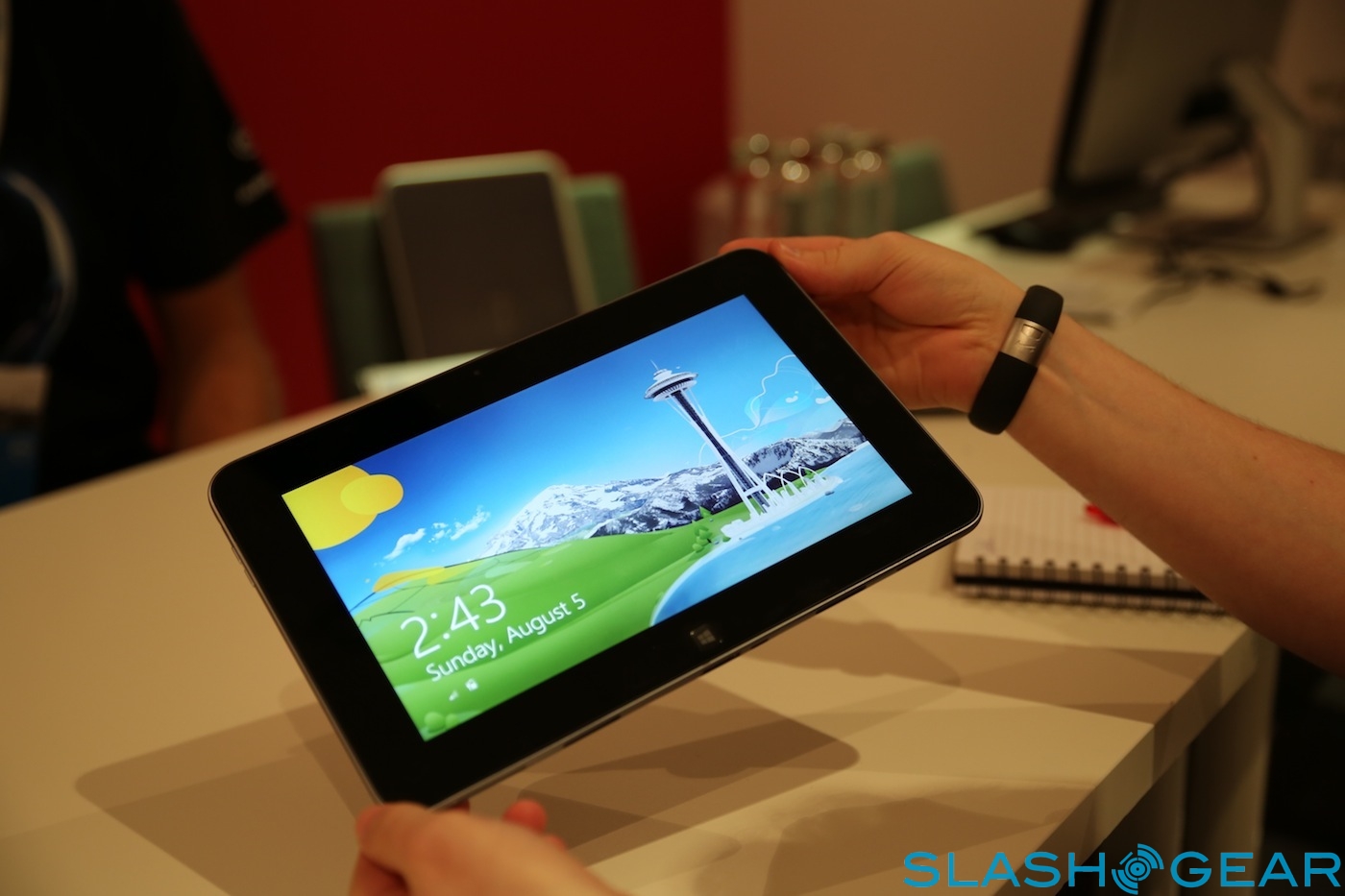 Up front there's an HD-resolution multitouch display that proved responsive at whipping through Windows RT's Metro-style start screen. Although it's just 10mm thick, there's both microUSB and microSD connectivity, though the lower section comes with extra connectivity too as well of the battery. Overall, combined slate and dock can run for up to 20hrs, Dell promises, comfortably exceeding a couple of work days.