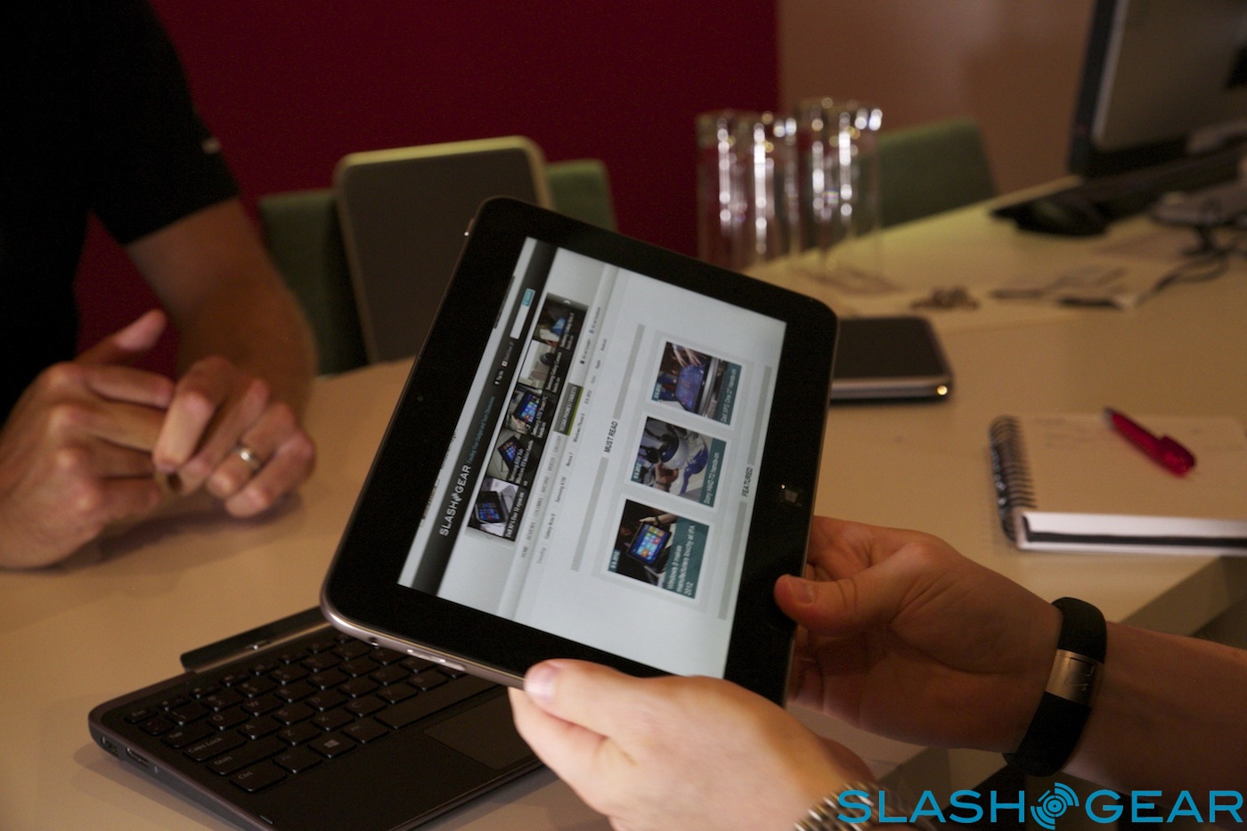 Tug out the slate – the mechanism uses a single lock-slider, and proved a little tricky on the pre-production model we were using, though Dell says that will be addressed by the time the XPS 10 hits the market – and it's a lightweight way to browse, view video, and use basic Office apps. It has to be said, it doesn't feel as instantly high-quality as the new iPad, but neither does it feel cheap or as though it's likely to break.