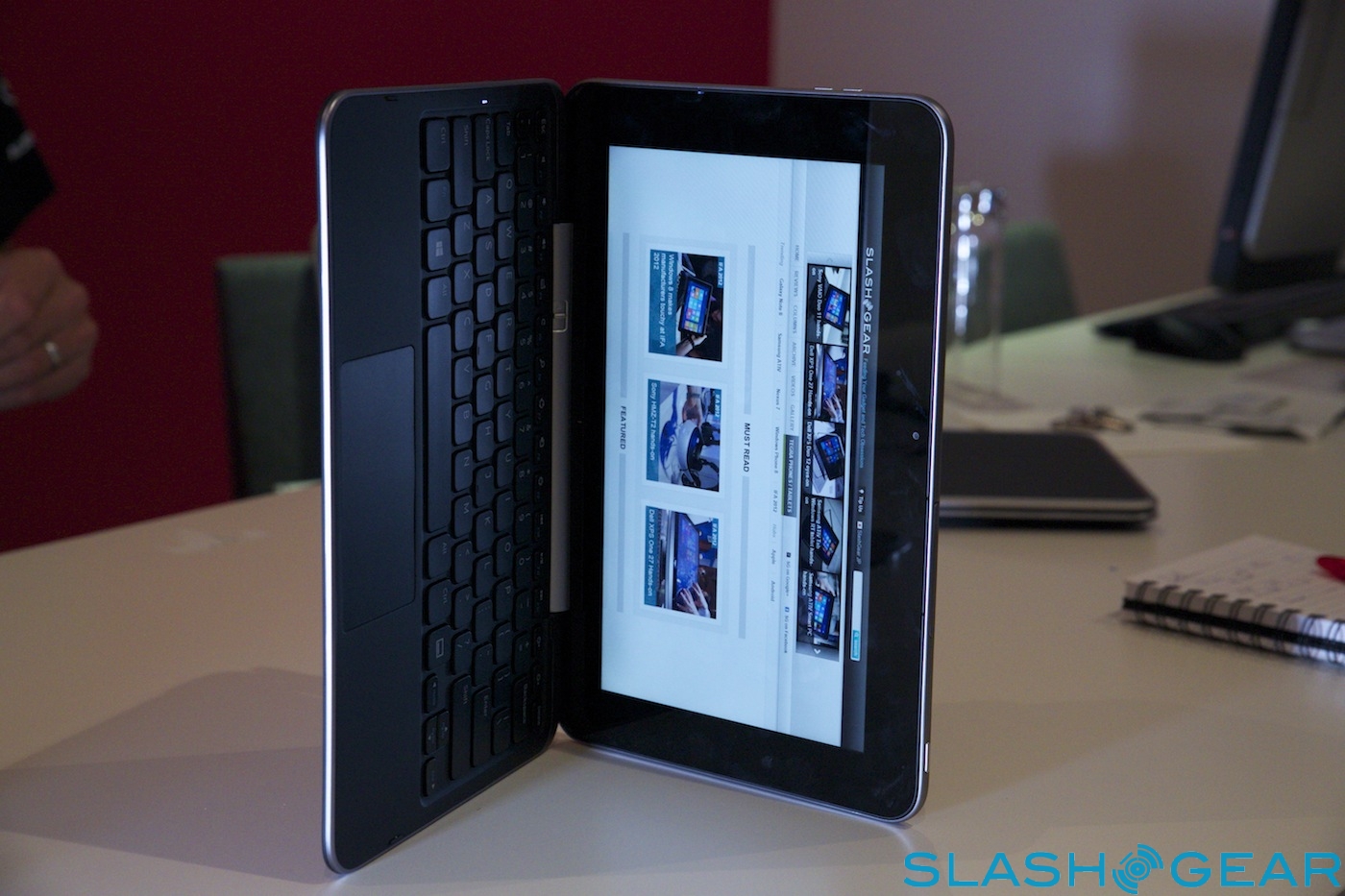 At first glance, the XPS 10 looks like a mash-up of Dell's old netbooks and the current XPS ultrabooks. The plastic casing feels sturdy in the hands while still remaining lightweight – Dell isn't allowing people to talk about exact specifications yet, including most of what's going on inside the slate section – though the company has used a Snapdragon S4 processor, Qualcomm has already confirmed.