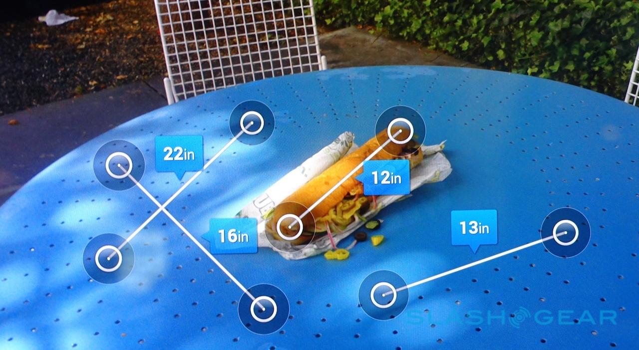 That way you can quickly get an idea of how wide a window frame is, perhaps, or the distance between a table and the wall. Objects or people can be measured, with the tablet's range being several meters from the camera.