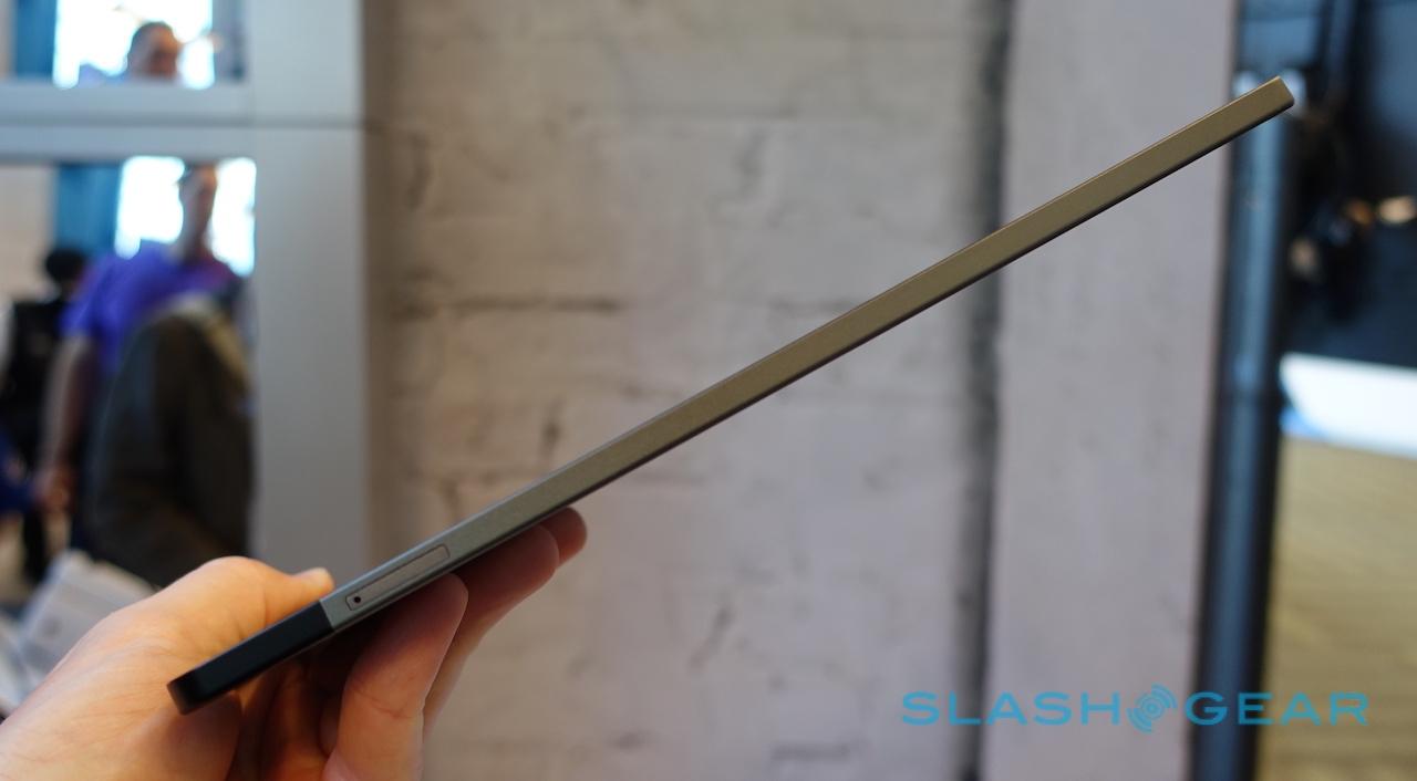 Inside, there's Intel's Atom Moorefield quad core running Android 4.4 KitKat, and though we didn't have an extended time to put it through its paces, it kept things moving swiftly and even what we'd guess would be processor-intensive tasks like photo editing were done without delay.