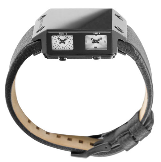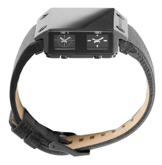 We're used to Tokyoflash watches being troublesome to decipher, but this Diesel DZ9044 may end up hurting your wrist, not your brain. Rather than put the dial on the front, Diesel have slipped four tiny watch-faces onto the left and right sides of the timepiece, meaning you may have to get used to bending your wrist every time you want to know if it's almost lunchtime.