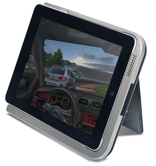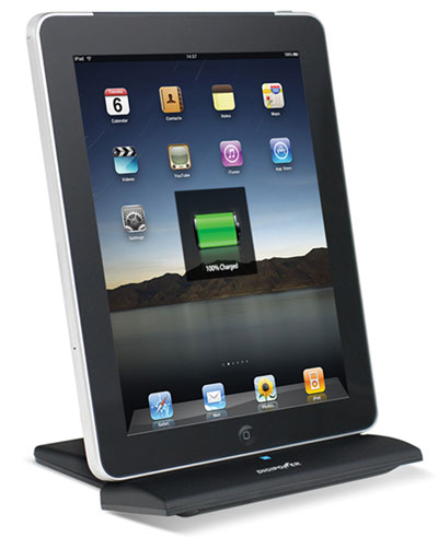 Other features include a detachable shoulder strap and a flexible rubber border. The Coffee Clutch also has a fold out stand to prop the iPad up. The company also has a Universal Charging Dock that connects to your PC to charge and sync the iPad. It has a wide base, LED power indicator, and will charge the iPhone or iPod.