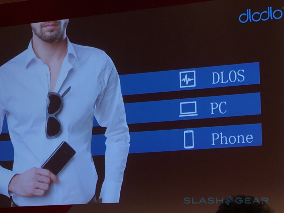 As you might expect, at that weight something has to give. Dlodlo has split the display from the processing box, a smartphone-sized pack running the company's own DLOS custom OS – built on top of Android 5.0 – with a virtual reality interface.