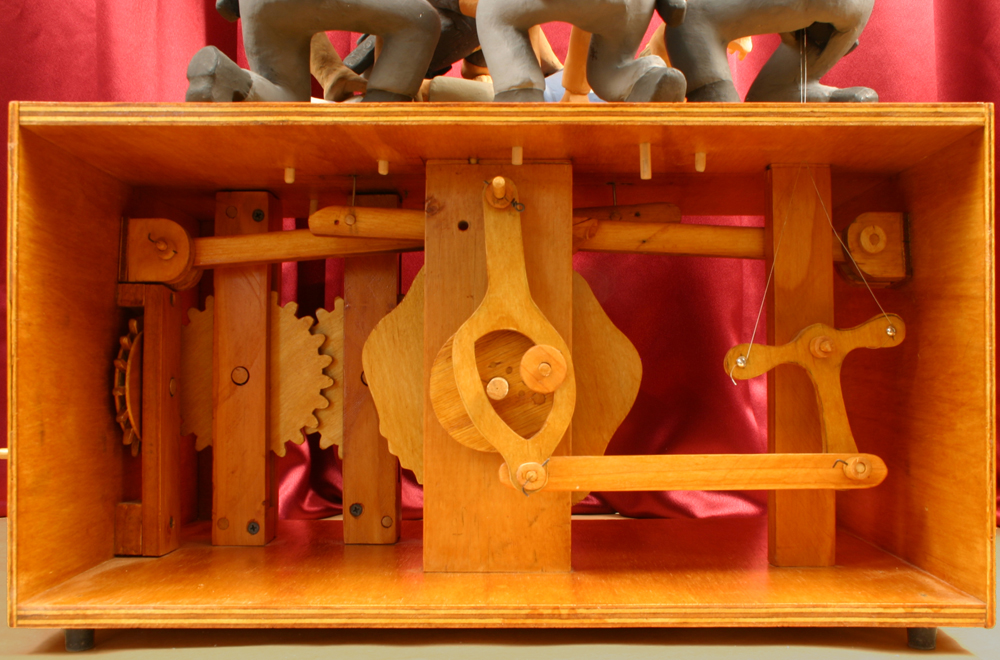 The whole thing measures 52 x 58 x 31 cm. Haddock is responsible for numerous art pieces, automaton, comics and sculptures, usually commenting on politics, war or other topical issues. You can see more here.