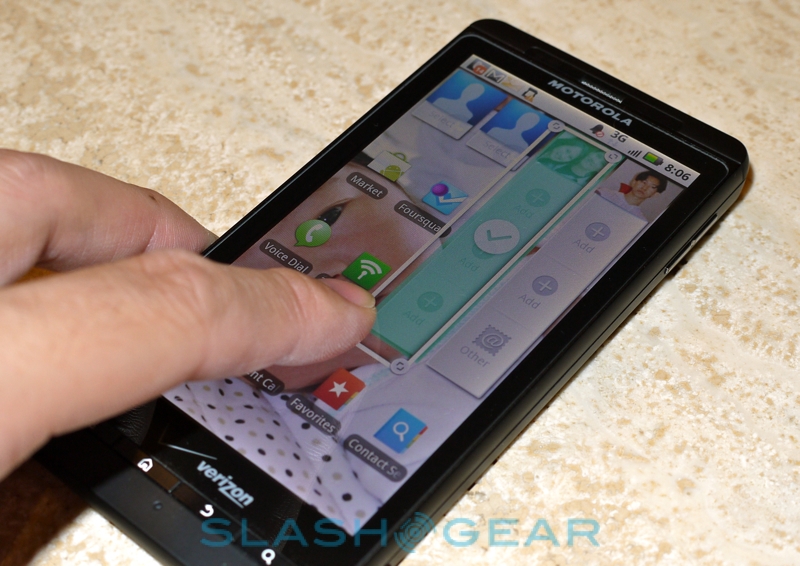 Of course, you can also ignore the built-in networking functionality and use your own choice of apps – the official Twitter client, for instance, or one of the many third-party offerings. Most of the time we found separate apps gave us a better user experience anyway. There are also various RSS and contact widgets that can be not only placed freely on the Android homescreen – rather than locked to the normal 4 x 4 grid – but resized depending on how much information you want showing. The flip-side is, of course, that by customizing Android, Motorola has likely left consumers waiting longer for updates to newer builds of the OS; considering the DROID X ships with Android 2.1 to begin with, not the newer Froyo, that's a potential sticking point for would-be buyers. The compromise made on an HTC Sense device, for instance, is often easier to stomach because Sense is such a slick environment and adds to the user experience: when you're basically ignoring the "enhancements" Motorola have introduced, you find yourself wishing they'd just left well alone and delivered Android 2.2 untouched.