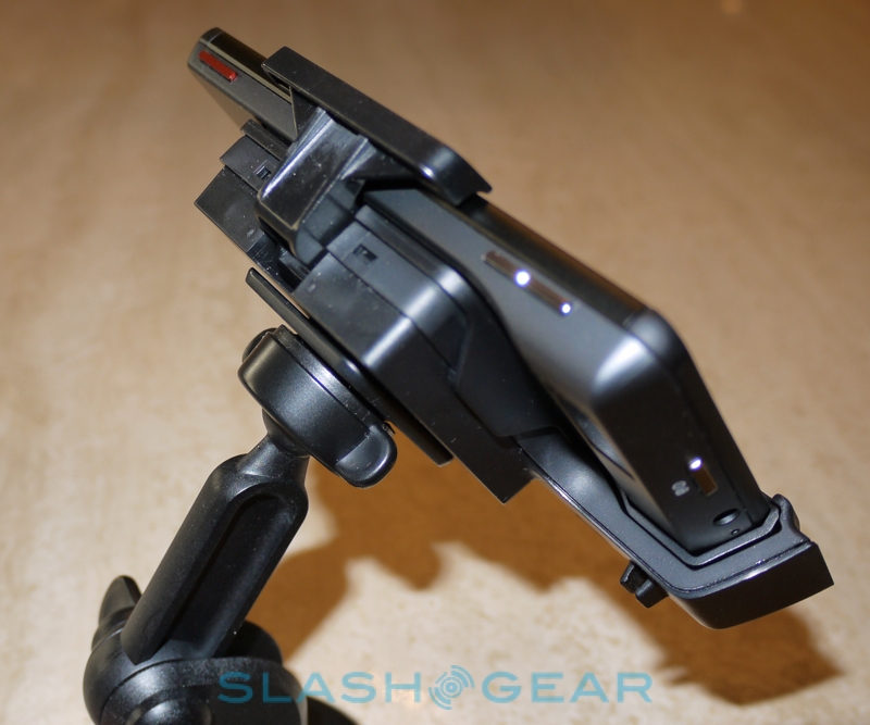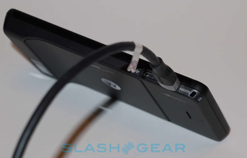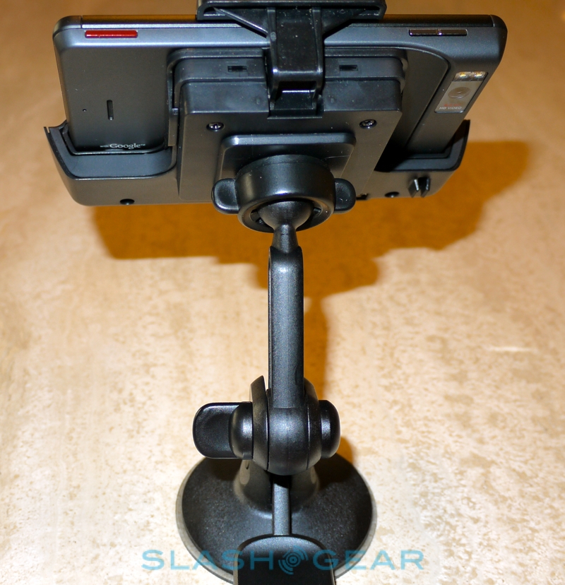 Motorola's in-box accessories aren't too impressive, barring the 16GB microSD; you get a microUSB cable and the charger, meaning you'll need to pick up a micro HDMI cable if you want to enjoy your content on a bigger screen. Motorola would prefer you to pick up their DROID X HDMI Multimedia Station, of course, which as with the original DROID automatically turns the smartphone into a nightstand/desk-friendly digital photo frame, weather display and clock. It has both HDMI and USB connections for easy charging. Motorola's second dock for the DROID X is the Car Mount, a suction-cup attached windshield cradle with a USB input for recharging the smartphone and a 3.5mm output so that you can route the DROID X's audio through your car stereo (if it has a suitable aux-in port). Slotting the DROID X into place automatically loads up the finger-friendly dashboard, complete with access to media playback, hands-free calling and of course Google Maps Navigation for turn-by-turn directions. Both docks work well and feel solid, though Verizon are yet to confirm exactly how much they'll cost.