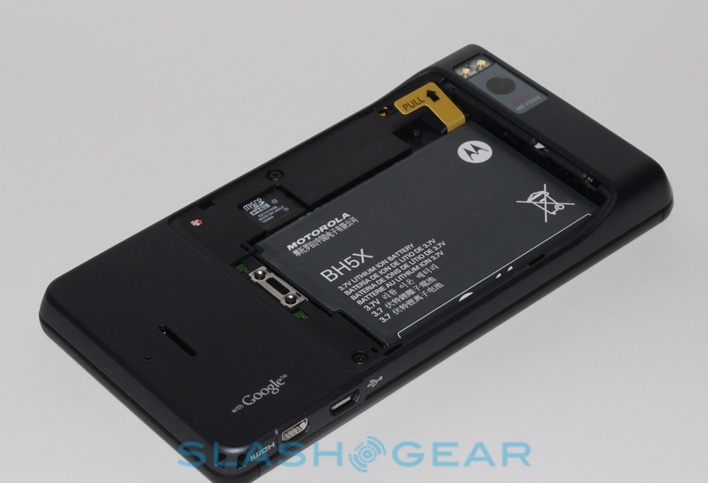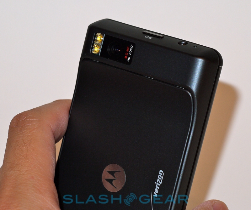 Connectivity includes the usual WiFi – b/g/n supported here – and Bluetooth 2.1+EDR, along with a microUSB 2.0 port and a micro HDMI port for hooking up the DROID X to an HDTV and playing high definition movies. There's a 3.5mm headphone jack along with GPS/A-GPS, an accelerometer, digital compass, proximity/ambient light sensors and a microSD card slot (supporting up to 32GB) to augment the 8GB of internal memory. Motorola will be including a 16GB microSD in the box, so already the DROID X exceeds the entry-level iPhone 4 when it comes to capacity.
