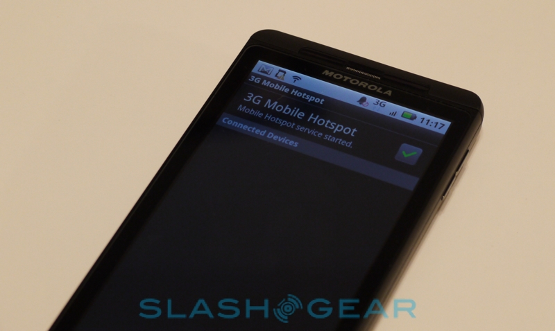 With all that display to gape at, you could be forgiven for forgetting that the DROID X is also a phone. Verizon's network has a reputation for decent voice performance, and the new Motorola doesn't disappoint. Thanks to the multiple microphones and strong speaker, both ends of the call proved clear and relatively hiss-free. Motorola preload a MiFi-style 3G Mobile Hotspot app which, like we've seen on other devices, allows you to share the DROID X's EVDO Rev.A connection among multiple WiFi connected devices. The carrier is charging $20 per month for 2GB of tethered data (distinct from the unlimited on-device data, it's worth noting), and unsurprisingly it all works as you'd expect.