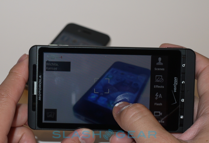 Video, meanwhile, looks crisper and better balanced than what we've seen the similarly 8-megapixel EVO 4G produce, though both handsets demand a steady hand if footage isn't to wobble and shake. The DROID X's three microphones can be switched between, depending on your subject and shooting style; you can, for instance, turn off the rear-favoring microphones and simply leave the front panel pick-up active so as to narrate a clip clearly. Motorola also say the three mics are used for noise cancellation, though that was less obvious in its impact.