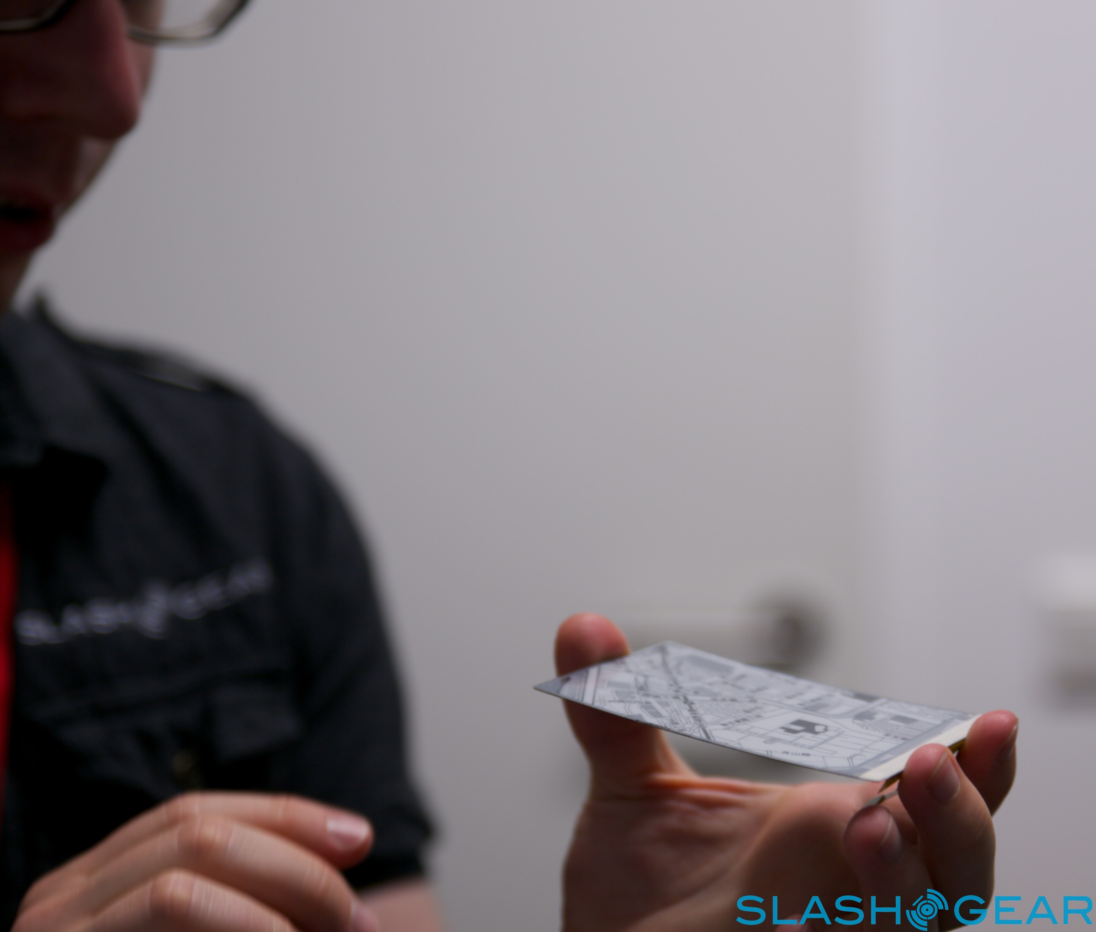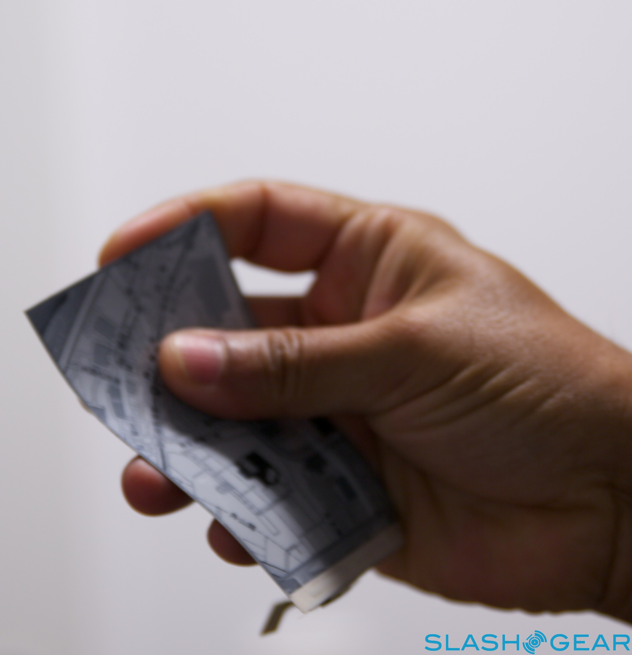 The e-paper display itself is incredibly thin, and even with a protective plastic coating – making it just about shatterproof – is roughly as thick as a typical phone battery cover. E Ink's concepts used functional e-paper, and plugged into a driver unit as per in our video demo were able to change on the fly; the LCD was simply printed on.