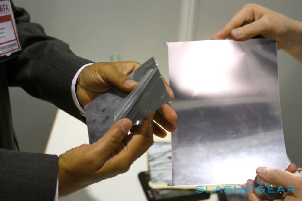 Finally, there are flexible displays. LG, Sony, Samsung and HP are all working on their own bendable panels, replacing the normal glass substrate with a plastic one. Plastic Logic is perhaps the best known, but each company could have products on the very market soon.