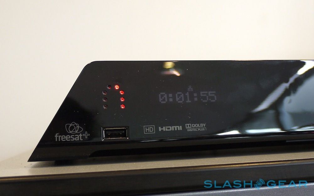Inside, meanwhile, there are two DVB-S2 freesat+ tuners – allowing the HDS-600RS to record two channels simultaneously, or show live TV while recording another program – together with a 500GB hard-drive good for up to 300hrs of SD content or 100hrs of HD. Regular 576i SD broadcasts can be upscaled in-box to 720p or 1080i.