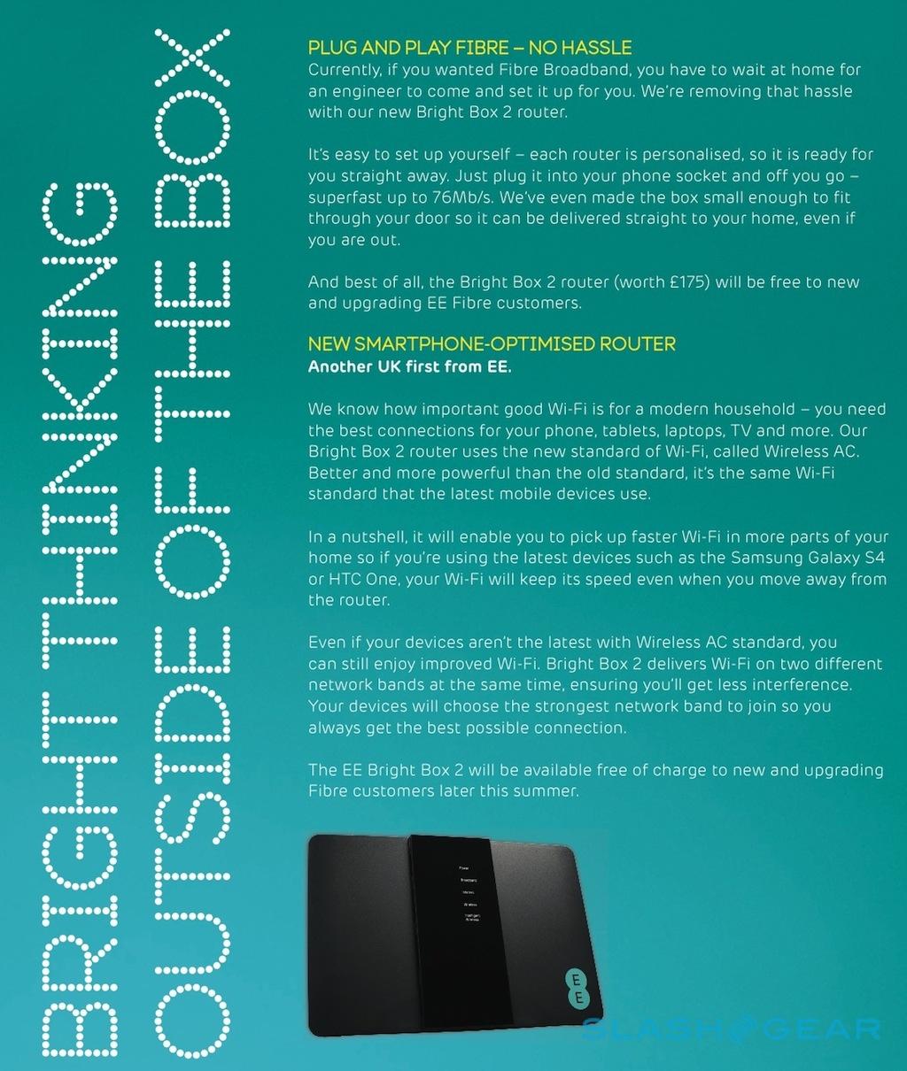 For the home, meanwhile, there's the EE Bright Box 2, an 802.11ac WiFi router for EE fiber subscribers. It'll be offered free to plug-and-play to EE broadband subscribers for easy installation, and has four ethernet ports and supports 2.4GHz and 5GHz use.