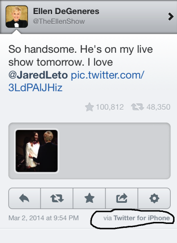 Based on Ellen's extremely visible usage of the Galaxy Note III during broadcast, the chances of her doing so without prompting seem too small to be real. That doesn't mean it wasn't entertaining, of course – and Twitter received it all very, very well.