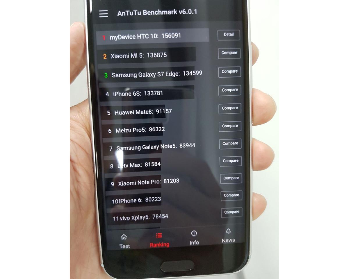 Today we're having a peek at not just the latest HTC One (or HTC One M10, or HTC 10) leak, but the full collection from the past several weeks. The latest addition to this collection is a supposed device-in-hand photo with a "HTC 10" listing at the top of an AnTuTu Benchmark app. In this app, its' shown that the HTC 10 is right up at the top of the pack, ahead of the Samsung Galaxy S7 Edge and the Xiaomi MI 5 by a significant margin.