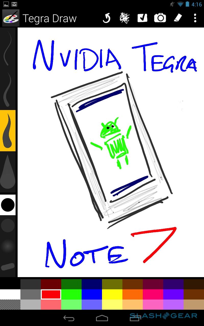 In daily use, much of the time you hardly notice the differences between the Tegra Note 7 and more expensive pen-enabled tablets. NVIDIA loads two stylus-specific apps by default – Tegra Draw focused on art, and Write for note-taking – which both pop up on a launcher when the pen is pulled out; alternatively, you can set a specific app to auto-load when you remove it. We found the ink flowed smoothest in Tegra Draw, where sweeping curves and fine detail can be achieved. In Write, in contrast, we had a little more difficulty getting precise handwriting, though the palm rejection works very well.