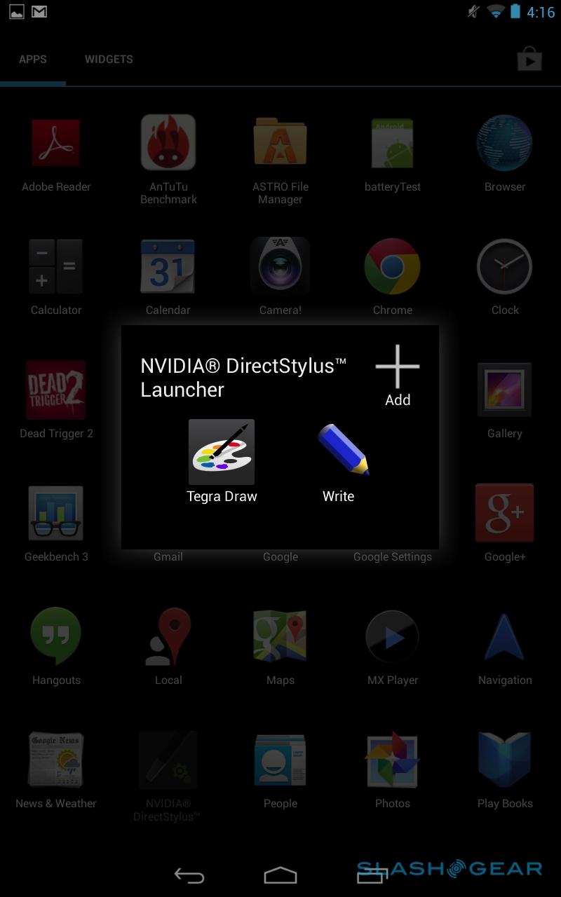 By running the touch processing through Tegra 4 rather than dedicated sensors, NVIDIA can not only speed the process up so that it's more responsive, but save money too. In effect, the chip is doing real-time signal processing – NVIDIA calls it DirectStylus – to differentiate between nib, and fingers, and palm, all in software.