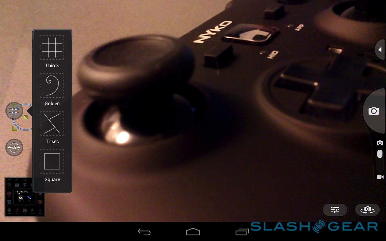 Five megapixels may not seem much in the grand scheme of Android cameras, but it's what NVIDIA does with them – or, more accurately, will do with them – that's important. Rather than the standard Android camera app, NVIDIA preloads the freshly-released Camera Awesome for Android, which supports features like focus tracking for moving objects (allowing you to draw a box around an object and have it followed, even if it moves out of frame and then returns) together with separating the points of focus and exposure.