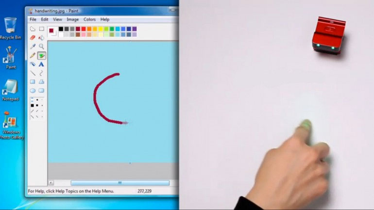 The product is called the evoMouse and you can get it in Pet and Cube versions. The Pet version is the mouse alone, you sit it on your desk, and it will pick up your hand movement and turn it into mouse movement for your computer. It even supports gestures for double click and scrolling.