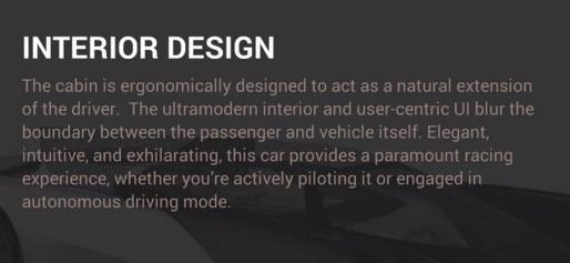 Also inside the vehicle you'll find what Faraday Future calls an "ultramodern interior and user-centric UI." Displays and software "blur the boundary between the passenger and the vehicle itself."
