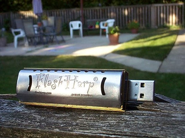 The instrument is made in the USA by hand with high quality parts. The dimensions of the FlashHarp are 3.5" x 1 3/16" x 15/16". You can order the 2GB version of the drive right now for $49.95 with free shipping. There was also a 4GB version available to purchase, but the item has been removed.